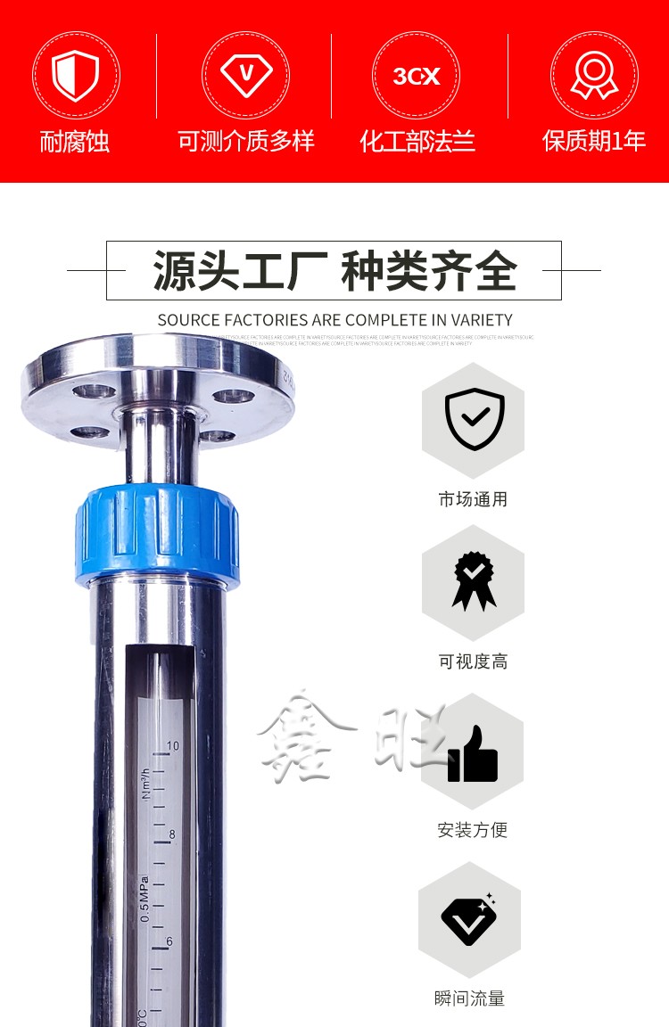 玻璃轉(zhuǎn)子流量計(jì)是一種引進(jìn)型玻璃轉(zhuǎn)子流量計(jì)。“20”代表材質(zhì)為鋁合金,“25”代表口徑為DN25,VA代表螺紋連接,SA代表軟管連接,F(xiàn)A代表法蘭連接,VA20-25玻璃轉(zhuǎn)子流量計(jì)的連接方式為上下連接.因常規(guī)的玻璃浮子流量計(jì)有時候無法滿足工業(yè)上的一些安裝問題,遂出現(xiàn)了此款流量計(jì)。VA玻璃轉(zhuǎn)子流量計(jì)為螺紋型玻璃轉(zhuǎn)子流量計(jì);SA玻璃轉(zhuǎn)子流量計(jì)為軟管型玻璃轉(zhuǎn)子流量計(jì);FA玻璃轉(zhuǎn)子流量計(jì)為法蘭型玻璃轉(zhuǎn)子流量計(jì)。不管哪種連接方式的玻璃浮子流量計(jì),均可選擇口徑:DN15,DN25,DN40,DN50