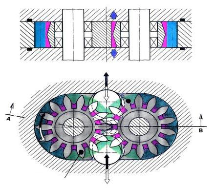 LA系列齒輪流量計腔體內有一對互相嚙合的齒輪作為轉子,兩個齒輪與腔體可以分別構成一個固定的體積,稱為標準容積、流量就是通過計算一定時間內來流通過標準容積的個數來計量。兩個精密配合的齒輪封閉在堅固的腔體內,工作時,被測液體推動齒輪旋轉,由非接觸式的檢測器檢測齒輪的轉動。齒輪間的的間隙形成測量腔室。每齒經過檢測器時,檢測器產生一個脈沖。輸出的脈沖信號經儀表容積/脈沖(Vm)換算和處理,顯示為滿足用戶要求的讀數。此流量計特別適用于精密、高壓、高黏度環境。