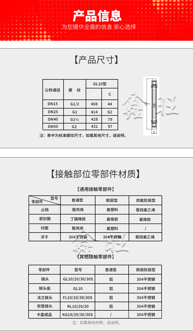 GL10-15玻璃轉(zhuǎn)子流量計,GL/RL/FL10、20、30型玻璃轉(zhuǎn)子流量計的連接有管螺紋(GL10、20、30型)、軟管(RL10、20、30型);GL10-15玻璃轉(zhuǎn)子流量計,法蘭(FL10、20、30型)三種方式。其Z大工作壓力和Z高工 作溫度均高于原有相同通徑的LZB/LZJ系列玻璃轉(zhuǎn)子流量 計產(chǎn)品;分普通型(測量一般無腐蝕流體)和耐腐型(測 量的腐蝕性流體)兩種。產(chǎn)品體積小、結(jié)構(gòu)輕巧,外形 美觀,維修方便、安全可靠,安裝簡單。FL10、20、30型 法蘭可轉(zhuǎn)動,與現(xiàn)場管道法蘭孔吻合。
