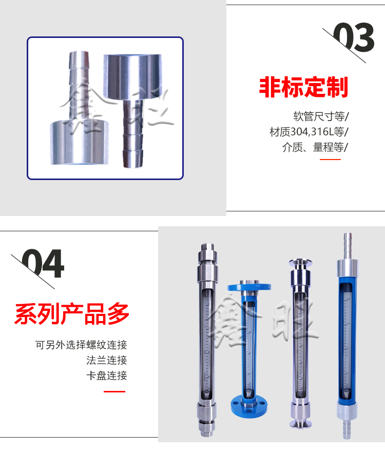 GL/RL/FL10、20、30型玻璃轉(zhuǎn)子流量計的連接有管螺紋(GL10、20、30型)、軟管(RL10、20、30型);法蘭(FL10、20、30型)三種方式。其耐壓和耐溫均高于原有相同通徑的LZB/LZJ系列玻璃轉(zhuǎn)子流量 計產(chǎn)品;分普通型(測量一般無腐蝕流體)和耐腐型(測 量的腐蝕性流體)兩種。產(chǎn)品體積小、結(jié)構(gòu)輕巧,外形 美觀,維修方便、安全可靠,安裝簡單。FL10、20、30型 法蘭可轉(zhuǎn)動,與現(xiàn)場管道法蘭孔吻合。