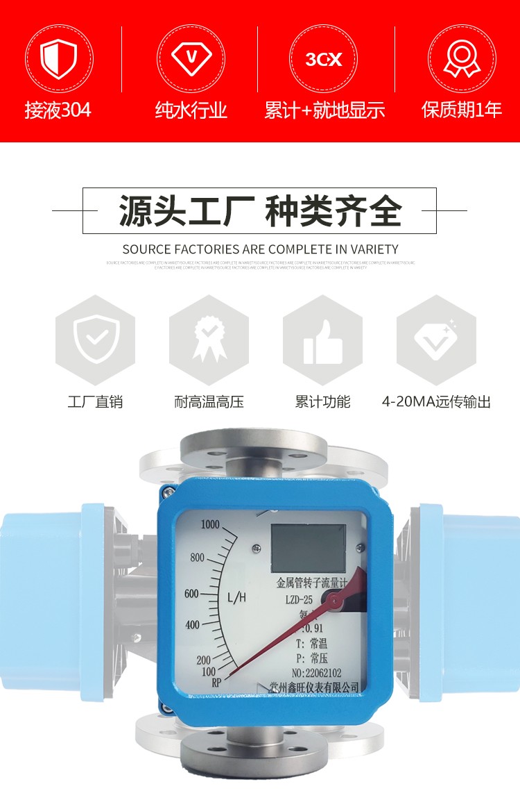 金屬管轉子流量計結構筒單、工作可靠、準確度高、適用范圍廣。廣泛應用于國防、化工、石油、冶金、電力、環保、醫藥等領域的液體、氣體流量的測量和控制。
