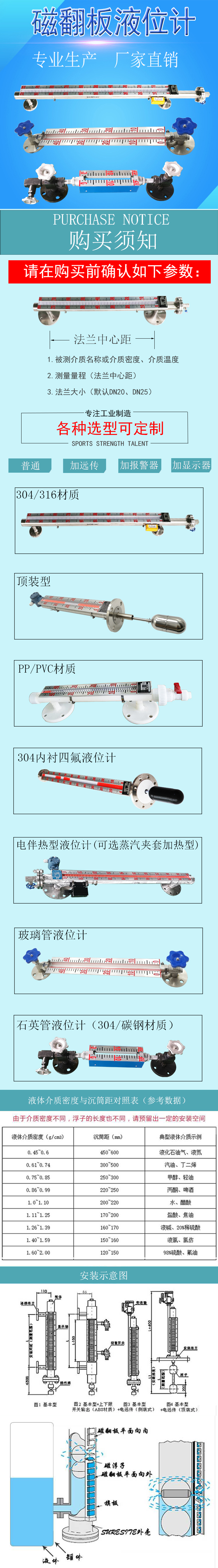PVC磁翻板液位計是根據國內外同類產品加以消化提高且按照原化工部頒布的磁性液位計標準HG/T21584-95研制生產的產品。該儀表可用于各種塔、罐、槽、球型容器和鍋爐等設備的介質液位檢測。非標定制可選: