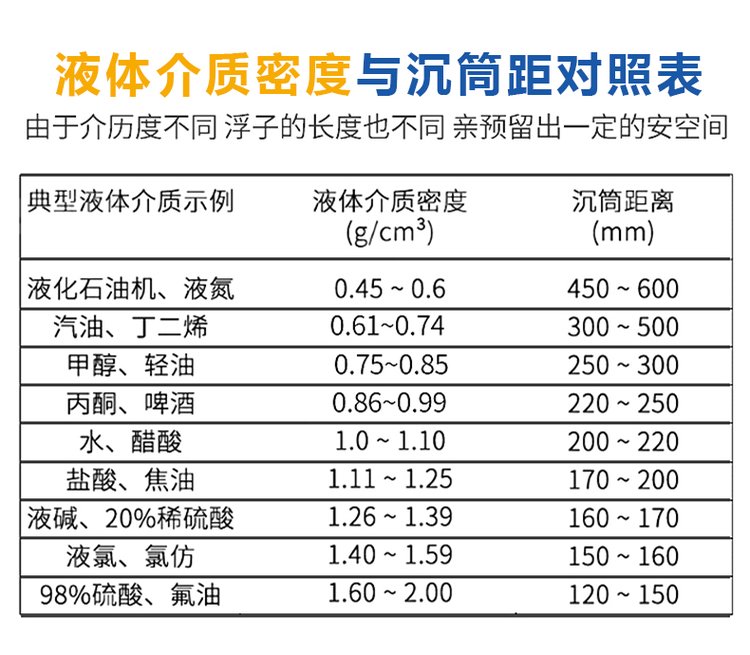 7.介質粘度:≤0.4PaS,對于粘度大的介質或溫度低時易結品的介質,可根據用用戶要求選 用加熱型夾套式液位汁。