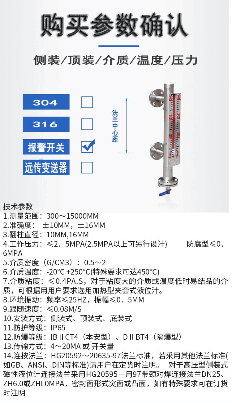 防腐磁翻板液位計技術參數